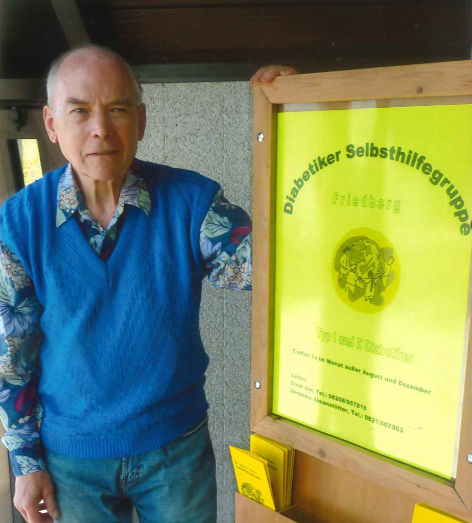 Im Jahr 2001 bei einem Hausarztbesuch (Diabetologe) redete der Arzt von einer Diabetiker-Selbsthilfegruppe, da ich doch schon lange zuckerkrank bin und lange Erfahrung mit der Krankheit habe. Außerdem gibt es im Raum Friedberg keine Selbsthilfegruppe für Diabetiker. Nach langem Überlegen sagt ich zu. Heute weiß ich, dass eine Selbsthilfegruppe nur Vorteile für einen Kranken bringt! Der Arzt erklärt einem die Grundbegriffe der Krankheit. Aber die Krankheit wirft im Alltag oft weitere Probleme auf. Diese Probleme und Fragen können in der Gruppe vorgebracht und besprochen werden. Meist findet sich dadurch eine Problemlösung. Gern gesehen sind außerdem in der Gruppe Vorträge zu verschiedenen Themen.